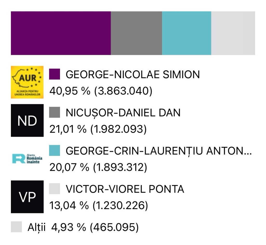 Turul al doilea al alegerilor este programat pentru 18 mai 2025, când George Simion și Nicușor Dan se vor confrunta pentru funcția de președinte. Acest scrutin este considerat crucial pentru direcția viitoare a României, având în vedere diferențele semnificative între viziunile celor doi candidați.